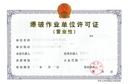 浙江京安爆破工程有限公司(以下簡(jiǎn)稱京安爆破)成立于2001年6月,是浙江省品種最全、憑照產(chǎn)能最大的,集研發(fā)、生產(chǎn)、銷售、配送、爆破服務(wù)一體化的民爆全產(chǎn)業(yè)鏈的大型民爆國(guó)企——浙江新聯(lián)民爆破器材有限公司的下屬單位;是中國(guó)工程爆破協(xié)會(huì)常務(wù)理事單位、浙江省工程爆破協(xié)會(huì)副理事長(zhǎng)單位;擁有“營(yíng)業(yè)性爆破作業(yè)……
